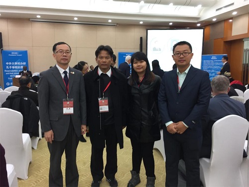 柬埔寨王家研究院院长宋独、柬埔寨王家研究院孔子学院柬方院长苏碧娜、中方院长夏修龙和赵雨老师合影