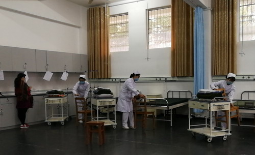 本着公平公正的选拔原则,中山大学第一附属医院对90名报名的同学进行了层层选拔。选拔共分为三轮,依次是面试、笔试、技能操作考试。在紧张充分的准备后,共90名同学参加了面试,52名同学通过面试进入笔试。随后,通过两项考核的同学进入操作考试环节。同学们紧握机会,结合平时所学进行铺床操作,努力展示新一代护理学子的新风貌!