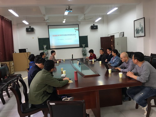 会上,参加会议的部分教师进行了热烈地讨论,分别就汉语言文学学科建设以及两部门之间的合作发表了自己的看法。通过本次专题推进会,汉语言文学学科建设中的任务得到分解,工作重点进一步得到明确,工作步骤得到细化,必将使汉语言文学学科建设迈入发展的快车道。
