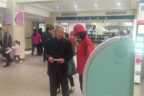 每周一至周五上午,在门诊部各楼层,都有穿着红马甲、戴红帽子的青年志愿者,贴心服务有需要的患者。青年医务志愿者们几乎都是牺牲了个人休息时间,在门诊服务过程中,热心地为患者指引,细心指导填写就诊信息,协助行动不便患者缴费、取药,耐心为患者演示自助挂号机、自助化验单机的操作流程,主动为患者提供方便。门诊部张主任表示:青年医务志愿者在门诊实地了解和熟悉患者就医流程后,在临床实践中也能更全面了解患者需求,更好地为患者服务。
