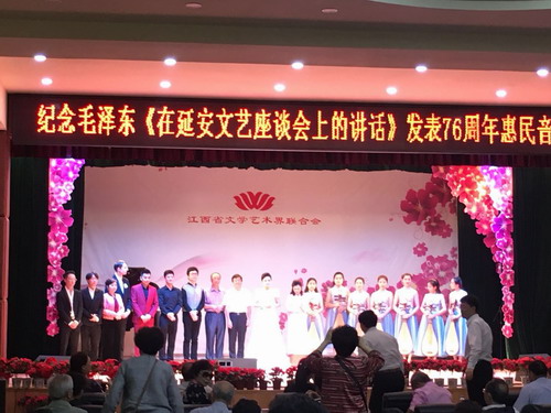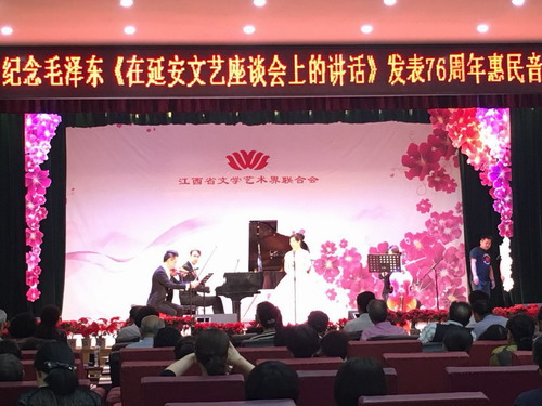 5月11日,纪念毛泽东《在延安文艺座谈会上的讲话》发表76周年惠民音乐会在省文联多功能厅举行,省文联领导和文艺界人士观看了音乐会。我校艺术学院教师叶树雯、王荇荇、理查德-波尔和戴笠等参加了演出。