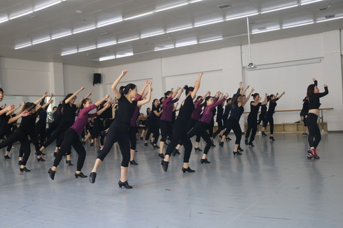 在三天时间里,刘佳老师为艺术学院舞蹈专业师生带来了爵士风格的电影《双面俏佳人》中“Le Jazz Hot”、 探戈风格的音乐剧《芝加哥》中“Cell Block Tango”、 迪斯科风格的音乐剧《泽西男孩》中“Who Loves You”以及音乐剧个性化表演形体训练、声乐与形体结合表演课程、音乐剧剧场舞训练等课程。