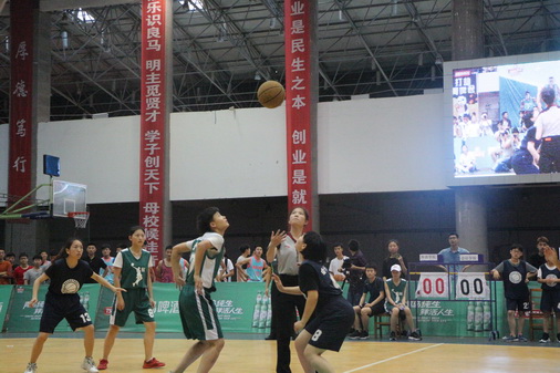 本次总决赛共分男子组、女子组两场比赛。首先是女子总决赛,由外国语学院队对会计学院队,其次是男子总决赛,由经管学院队对化环学院队。赛前,拉拉队走入赛场为观众带来一段劲歌热舞,现场的气氛也随之热烈起来。一声哨声响起,外语学院队员跳球为队伍抢到进攻权,之后便是一场激烈的角逐。比赛开始,双方分数都你追我赶,并没有出现较大的分数差,一直仅仅只有一分之差,外国语学院在最后三秒未能及时反超,最终会计学院以一分优势18:17夺冠。