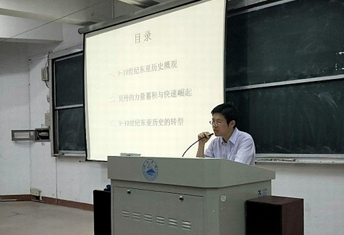 应旅游与国土资源学院邀请, 5月17日晚上在竞知楼阶四,湖北省社会科学院文史研究所曾成博士作了题为《9—10世纪东亚历史的转型——以契丹的勃兴为中心》的专题讲座。讲座由学院副院长孙冬英主持,学院专业教师及地理科学、人文地理与城乡规划、旅游管理等专业学生聆听了讲座。