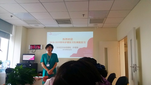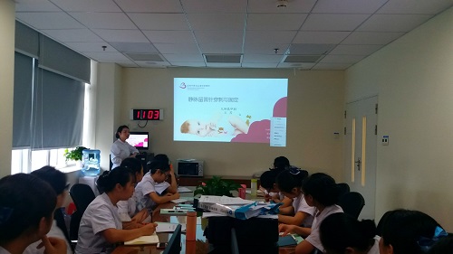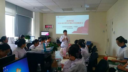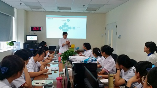 护理部组织相关科室护士长,以PPT的形式,就法律法规、医院规章制度、安全管理、护理文书、健康教育、护士礼仪、沟通技巧、职业素养、医疗设备的使用等内容对实习生进行了培训。期间,授课老师语言深入浅出、通俗易懂,并且结合临床案例,师生互动连连,课堂气氛活跃。