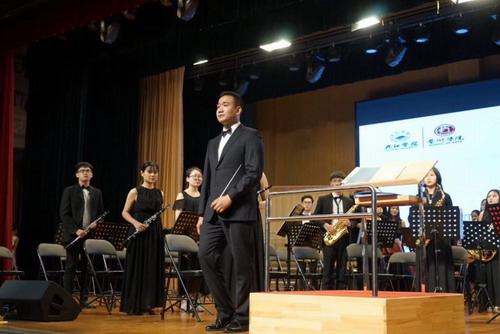 6月21日下午两点半,在共青市江西师范大学科技学院共青校区音乐厅演出队伍为该校师生带来了一场音乐盛宴。音乐会在开场曲《北京喜讯到边寨》中拉开序幕,随即带来管弦乐伴奏、合唱作品《农忙时节》,此外,还带来了交响乐合奏《泰坦尼克号》、交响管乐合奏《蓝色山脉传奇》、《舞蛇人》、女声独唱《一首桃花》、男女声重唱《饮酒歌》等形式多、质量高的节目。晚上七点半在共青市文化馆的南湖影剧院进行了第二场演出。6月22日晚七点半在柴桑区又进行了第三场的巡回演出。