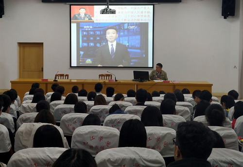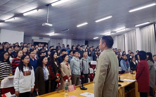 为深入学习贯彻党的十九大精神,加强入党积极分子对党的基本知识、基本理论的学习,从源头上确保发展党员质量,10月22日晚,我校第156期入党积极分子培训班开班仪式在图书馆主馆一楼报告厅顺利举行,来自外国语学院、电子工程学院、旅游与国土资源学院、化学与环境工程学院、信息科学与技术学院、经济与管理学院、电子商务学院218名入党积极分子参加了本次开班仪式。党校常务副校长李苏琴出席开班仪式并讲话,马克思主义学院余建明副教授为全体学员讲授开班第一课,党校办公室副主任陈娟老师主持开班仪式。