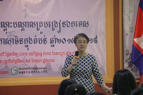 10月29日下午四时,2018-2019学年孔子学院总部/国家汉办柬埔寨地区公派教师和本土教师培训于柬埔寨皇家科学院孔子学院三楼会议厅圆满闭幕。本次培训为期两天,北京语言大学刘谦功教授和北京师范大学孙红娟副教授作为培训主讲师,来自柬埔寨全国各省的80名本土汉语教师、21名公派教师参与培训,32名汉语教师志愿者参与旁听。