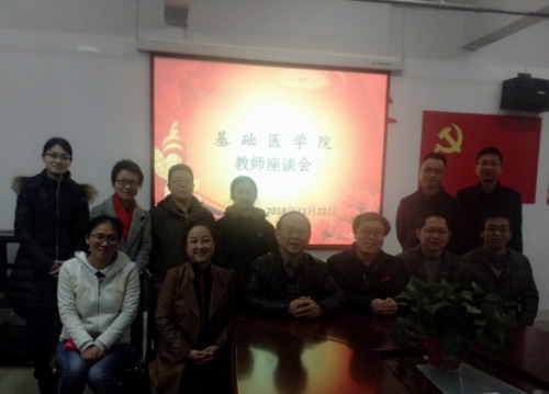 随后学院召开了专门的非医学背景教师座谈会,车向新院长、余朝阳书记、许晓源副院长、教研科负责人和学院全体非医学背景教师参加了座谈会,非医学背景的新、老教师畅谈教学体会,交流经验,会议气氛热烈,学院领导对各位年青博士的努力予以肯定,鼓励他们向老教师学习,多听课,努力提高教学水平,并表示将为他们创造更好的条件,帮助他们更快成长,期待他们学院的发展做出更大贡献。