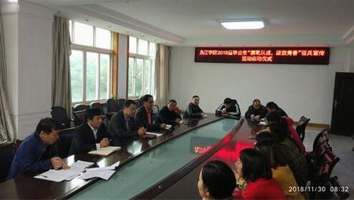 会上,孟飞就九江学院2019届毕业生“携笔从戎、绽放青春”主题征兵宣传活动的具体安排做了详细说明。