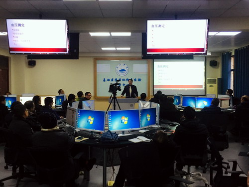 12月15日下午,董为人教授在基础医学虚拟仿真实验室作了题为“混合式教(导)+学理念及实践”的学术报告暨公开示范课。基础医学院车向新院长、药学与生命科学学院余敬谋副院长及基础医学院、临床医学院、护理学院、药学与生命科学学院骨干教师共40余人参加了本次学术报告,报告由车向新院长主持。