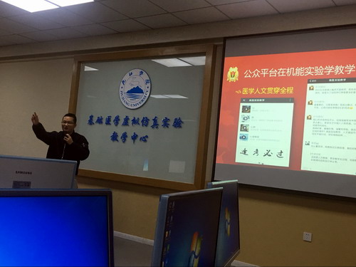 随后,南方医科大学实验教学管理中心洪天国老师进行了“基于微信公众号平台的机能实验学教学改革”的讲座。从微信公众号如何介入、引导学生自主学习,到公众号的运营、数据管理等进行了详细的讲述。