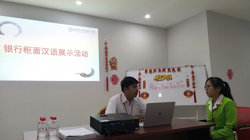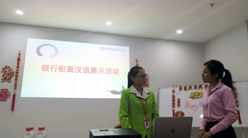 柬埔寨皇家科学院孔子学院加华集团汉语中心举办“迎新年,银行柜面服务汉语展示” 活动