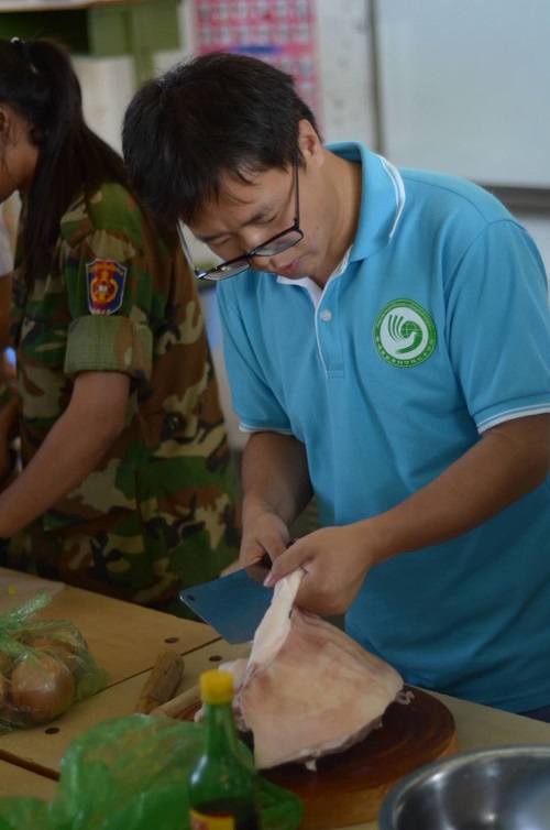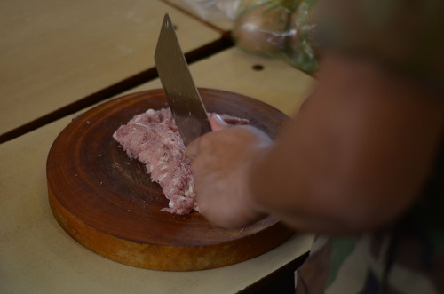 学生剁肉馅