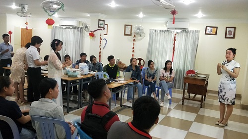杨馥聪老师用关于中国春节的PPT和英文版视频向学生介绍了中国传统年俗。杨老师向学员们详细介绍了中国春节的由来、春节的庆祝活动、春节的传统美食及其深刻的文化背景,还介绍了普通家庭是如何过春节的。讲解后的有奖问答环节,学员们用汉语回答了关于春节的习俗的问题,现场气氛异常热烈。