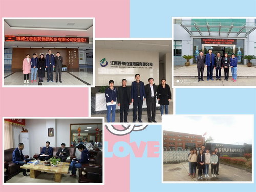 余副院长一行分别走访了江西富祥药业股份有限公司、江西东风药业股份有限公司、江西珍视明药业有限公司、江西博雅生物制药集团股份有限公司、江西青峰医药集团有限公司、江西新赣江药业有限公司、赣州港嘉兴食品有限公司、江西济民可信集团有限公司、江西百神药业股份有限公司、四特酒有限责任公司、仁和集团发展有限公司、汇仁集团有限公司以及江西杏林白马药业有限公司等合作单位,与各单位负责人和学生座谈交流。