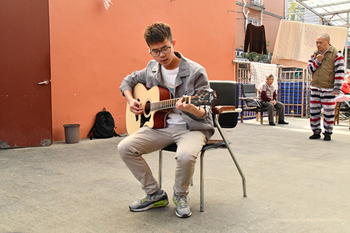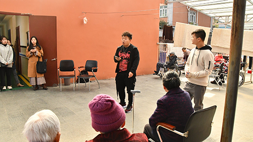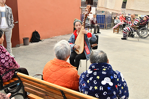 3月31日,艺术学院“文艺轻骑兵”第一站是在浔阳区第三老年公寓。老人们在听说“文艺轻骑兵”要来后都非常开心并表示欢迎。有些老人更是自己就走出来了房间,坐到了志愿者们准备好的长椅上,在老人们的掌声中节目正式开始。开场的是一首民谣歌曲之后依次是民乐琵琶和二胡,语言类节目小品过后就是美丽的舞蹈表演。看着队员们的表演,有些老人想起了自己年轻时的神采,也拿起话筒为大家表演自己的绝活,有些老人跟着志愿者们一起唱唱跳跳,好是快乐,也有些老人看着队员们,想起了自己的孩子,情不自禁,潸然泪下。