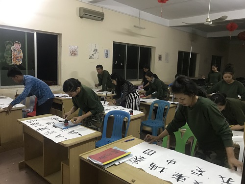 书法和国画在中国历史文化长廊中的地位举足轻重,为使学生加深对中华文化的认识,丰富学生课余文化生活,满足孔子课堂在读士兵的中国文化学习需求,金边警备旅孔子课堂于当地时间4月4日举办了书画比赛,为即将到来的柬埔寨新年增添风采。本次活动由金边警备旅孔子课堂汉语教师志愿者魏来组织策划,金边警备旅孔子课堂全体学员参与。