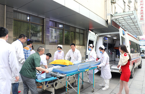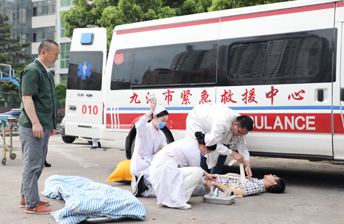 与此同时,急诊科迅速启动应急预案,组织相关科室医护人员集结待命,开启绿色通道,做好抢救的人员和设备等准备工作。经事故现场的初步处置,伤员被转运至医院,急救人员密切配合,进行分类救治。专家组会诊并观察患者病情变化,协同医生安抚患者及家属;护士长做好诊治登记,向到达现场的领导汇报伤员情况和救治情况。伤员们均得到及时、妥善救治,演练过程结束。