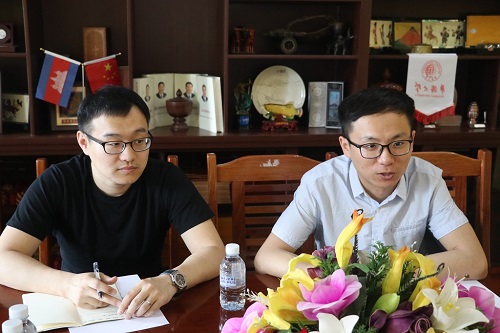项目主管苏文鹏老师首先对柴院长的热情接待表示感谢。随后,双方针对柬埔寨企业衡量面试者汉语水平的标准进行了讨论。黄青山老师提出,如今来柬投资的国内企业不断增加,汉语人才供不应求。企业面试往往仅以应聘时的沟通交流水平为标准,汉语口语流利即可录取,这样的方式往往无法正确判断学生的汉语水平。苏文鹏老师建议:“我们应该向各商会、企业普及HSK/HSKK考试的相关内容,强调该项考试的重要性,推进企业招聘以HSK/HSKK考试证书等级为参考标准招聘汉语人才,优先录取拥有相应水平等级证书的面试者。”