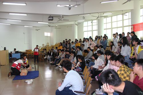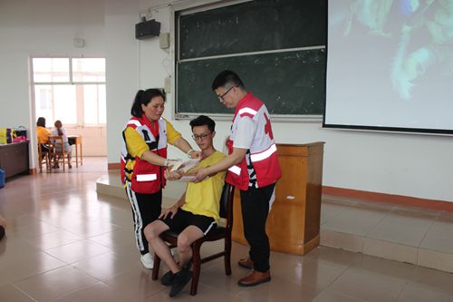 为进一步提高广大师生的应急救护的意识和能力,校医院邀请九江市红十字会急救培训专家对我校第三批学生卫生健康服务队员、学生代表进行应急救护培训,整个培训从4月10日开始到4月24日为止已顺利结束,考核合格的学员将获得红十字会救护员证。