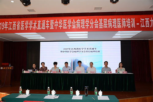 5月10-11日,江西省医学学术直通车暨中华医学会病理学分会基层病理培训—江西九江站暨九江病理读片会,在江西最美县城-武宁县顺利召开。本次会议由中华医学会病理学分会和江西省医学会联合举办,江西省医学会病理学分会、九江市医学会病理学分会、九江市病理质控中心、武宁县人民医院承办,会议由九江市医学会病理学分会主任委员、九江学院郑美蓉教授主持,来自全省的23家医院、70余名基层病理医师参加了此次培训,基础医学院病理教研室王庭老师也参加了此次培训。