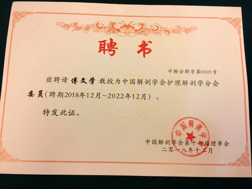 大会期间还举行了中国解剖学会护理解剖学分会换届选举,我校基础医学院教师人体解剖学教研室主任傅文学副教授当选为第十六届理事会委员。我校学生李俐欣获绘图比赛优秀奖。