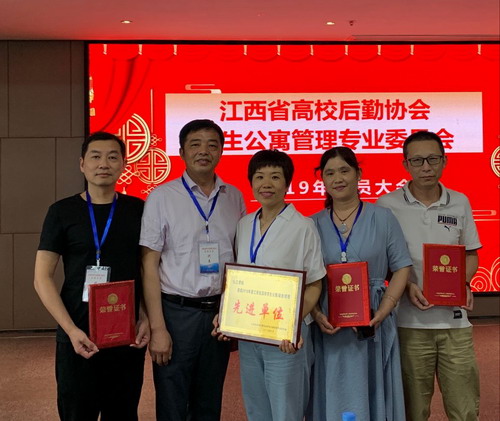 全国寓专委副主任郗蕴超做了《高校学生公寓标准化建设探索与实践》的报告,省寓专委主任琚烈勇做了《顺应新时代要求 推动高校寓管工作创新与发展》的报告,全会通过了《江西省高校后勤协会学生公寓管理专业委员会章程》,大会表彰了2018年度全省高校宿舍管理先进单位与先进个人,我校连续五年被评为学生公寓管理工作先进单位,肖家金、苗雪梅、刘彦星、汤丽娜四位同志被评为学生公寓管理工作先进个人。