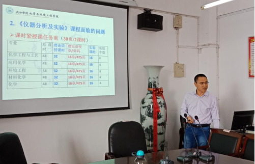 2019年度化环学院共申报9项教改课题。会上,各课题申报主持人依次从课题的申报意义、研究内容、实施方案、创新点等方面进行了10分钟左右的PPT阐述,评审组结合《教学研究课题〈申报书〉二级学院审查参考标准》进行了审查打分。虞耀君教授代表评审小组进行了总结。虞教授肯定了我院此次申报的教改课题大部分质量较好,并针对相关课题展开了具体点评,提出了很多宝贵的建设性意见。