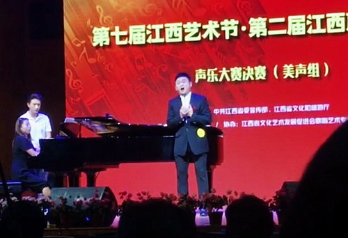 在9月14日结束的第七届江西艺术节•第二届江西声乐艺术节比赛中,我校艺术学院青年教师孔江闽力克群雄,脱颖而出,夺得美声组一等奖。