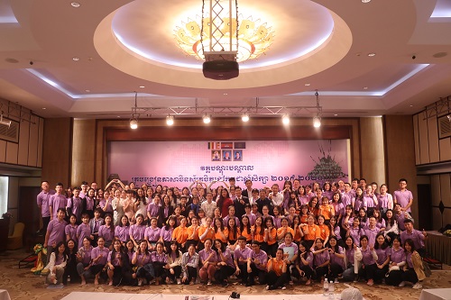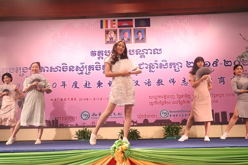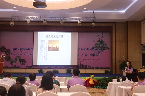 11日上午,2019-2020年度赴柬汉语教师志愿者岗中培训在柬埔寨金边大酒店顺利开幕。柬埔寨皇家科学院秘书长杨博(YANG Peou)博士、孔子学院总部/国家汉办项目官员来永梅女士、柬埔寨柬华理事总会常务副会长兼文教处长郑棉发勋爵、柬埔寨柬华理事总会常务副会长兼文教副处长蔡伟华先生、柬埔寨柬华理事总会常务理事陈中盛先生、吴朝文先生、孙宝儿先生、曾广荣先生、柬埔寨柬华理事总会常务秘书钟耀辉先生、柬埔寨皇家科学院孔子学院柬方院长苏碧娜女士(VUTH Sopheakna)、中方院长柴克清先生、首都师范大学国教学院林秀琴副院长、柬埔寨皇家大学DHY汉语中心主任周丽云先生、志愿者管理教师田金金女士、李玉立先生等领导莅临本次开幕式。苏碧娜院长、郑棉发勋爵以及来永梅女士致辞,希望志愿者们“展现青春风采,让‘汉语之花’在柬埔寨继续美丽绽放”。全柬253名汉语教师志愿者和16名公派教师参加了本次开幕式。