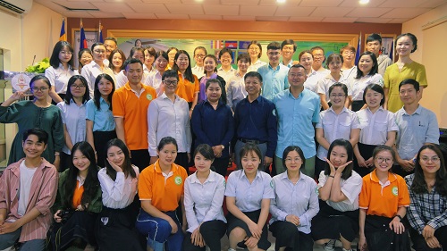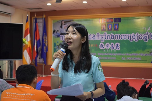 2019年11月10日下午,为进一步提升孔院课堂教学质量,提高汉语教师志愿者的教学水平,促进教师们相互交流和学习,柬埔寨皇家科学院孔子学院在孔子学院本部三楼会议室隆重举办了一年一度的孔子学院汉语教师志愿者教学竞赛。柬埔寨皇家科学院孔子学院中方院长柴克清先生和柬方院长苏碧娜(VUTH Sopheakna)女士莅临本次教学竞赛现场,来自孔子学院本部及下属各教学点的60名汉语老师参加了此次活动。