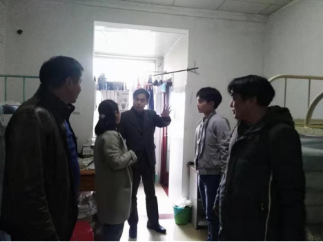 座谈会后,杨耀防一行来到学生寝室查看了学生生活环境并就寝室冬季用电安全等方面提出了要求。