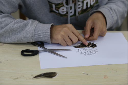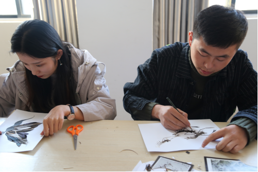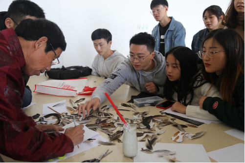 通过张林发先生的课堂指导和互动交流,让学生对羽毛画文化有了进一步的认识与了解。触动了同学们对民间艺术学习、保护、传承艺术创作的热潮,加强了对同学们传统手工技艺能力的培养积极性,取得了较好地成效。课堂中学生认真做笔记,整个现场教学过程中学生聚精会神,积极探索,获益良多。