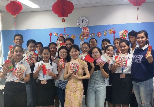 中国节庆庆祝系列活动是孔子学院每年都精心组织的文化活动,是中柬文化交流的有效途径之一。1月14日,孔子学院银行学院汉语中心苏晓君老师组织了一场主题为“万福迎新春”的文化活动。1月15日晚,金边警备旅孔子课堂魏来老师组织了课堂春节文化体验活动,通过包饺子、贴春联等环节激发了同学们对中国传统民俗文化及现代风俗的兴趣。1月17日晚,孔子学院亚欧大学中文系在金色大厅隆重举办2020年春节联欢晚会。