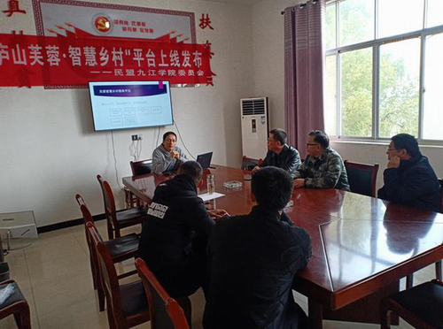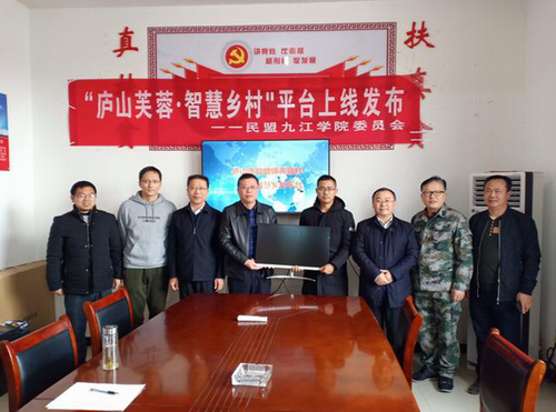 2020年1月6日,由九江市教育局资助、民盟九江学院委员会专家研究开发的“庐山芙蓉智慧乡村”平台正式上线运营。九江市政协副主席、民盟九江市委主委、化环学院院长严平,民盟九江市委常委、九江学院委员会主委梅龙宝,庐山市蛟塘镇党委书记李曲波,庐山市蛟塘镇芙蓉村第一书记李然、村委会主任熊鹏等出席仪式。