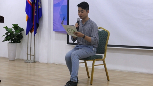 为了提高学生的汉语水平,增强学习氛围,锻炼学生能力,柬埔寨皇家科学院孔子学院亚欧大学中文系组织了第一届诵读比赛。经过一个多月的筹备和班级初赛后,诵读比赛决赛于13日在亚欧大学13楼会议室圆满落幕,活动历时一个半小时。经过紧张而激烈的比拼,高年级组的冠军由来自大三晚上班的林美金摘得,低年级组冠军则由大二上午班白世明夺得。