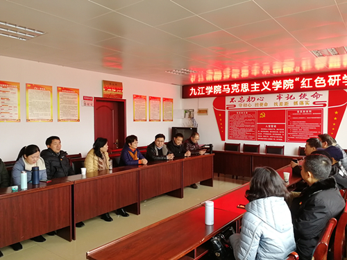 第一期“红色研学”活动于2019年12月31日元旦前夕拉开序幕。马克思主义学院党委组织党委委员、教工党支部新老支委等一行来到我校扶贫点、九江市“抓党建、促脱贫”示范点——武宁东山村开展研学活动。