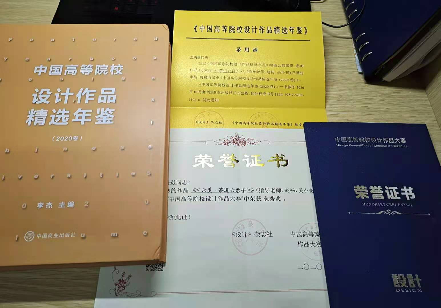 刘禹彤同学的作品《六羡·茶道六君子》荣获了中国高等院校设计作品大赛“优秀奖”,作品入选中国高等院校设计作品精选年鉴》。