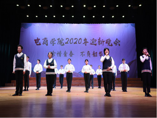12月9日晚七点整,电子商务学院2020迎新晚会在主校区大礼堂拉开帷幕。副校长夏启国受邀出席观看,校团委、电商学院负责同志与教职工代表、学生干部代表以及2020级新生共同观看了本次晚会。本场晚会以“珍惜青春 不负韶华”为主题,分为“珍惜青春 不负韶华”与“以梦为马 砥砺前行”两个篇章,展现出电商人的青春活力,号召同学们珍惜青春年华书写璀璨人生。