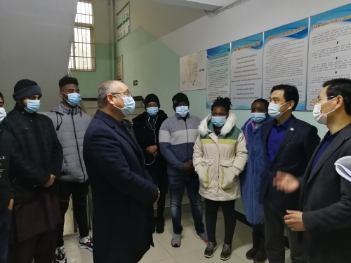 在留学生宿舍,杨耀防、陈小林在给留学生们送上新春祝福的同时,叮嘱国际交流学院负责人要主动关心假期在校留学生的学习生活,同时要加强留学生的假期安全教育和管理,强化学生宿舍安全用电意识,杜绝火灾隐患,保障留学生度过一个平安和谐的新春佳节。