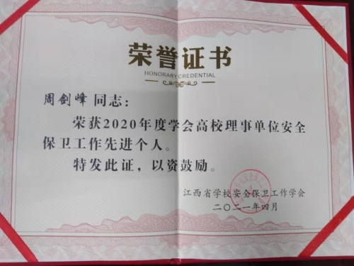 4月22日-23日,在宜春召开的2021年江西省学校安全保卫工作学会年会上,我校保卫处处长余朝阳当选为新一届江西省学校安全保卫工作学会副理事长,我校保卫处副处长周剑峰获评2020年度全省保卫工作先进个人、教育学院黄为俊老师获高校本科组公共安全教育骨干教师教学能力展示活动三等奖。