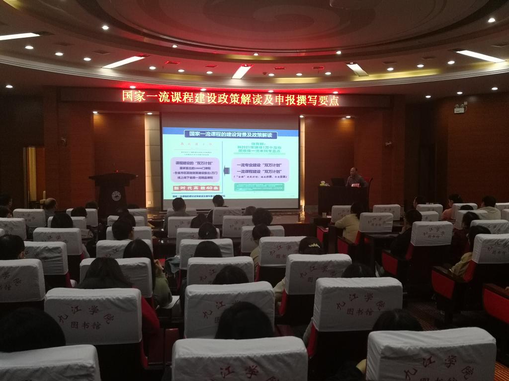 4月28日下午,江西省教学名师、首届金牌教授、南昌大学博士生导师胡兆吉教授应邀来我校作了题为《国家一流课程建设政策解读及申报撰写要点》的精彩报告。教务处负责人、各二级学院教学副院长、教研科科长、各类课程负责人及团队成员200余人聆听了报告。