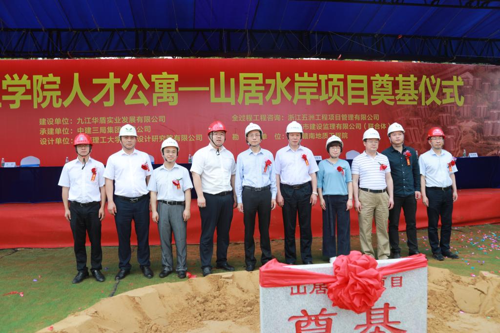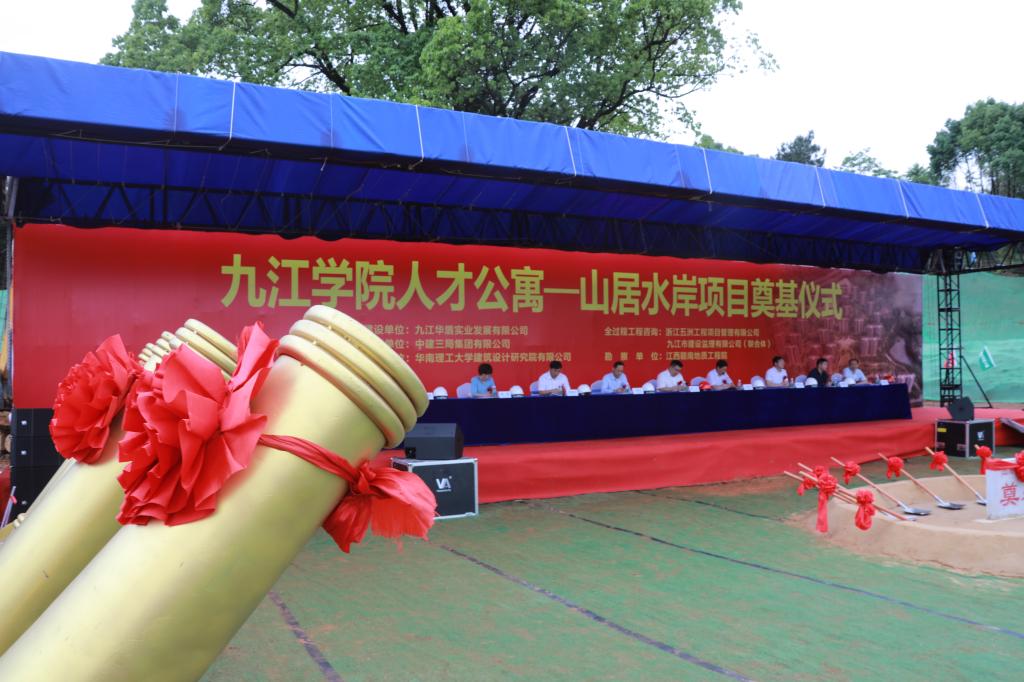 奠基仪式的举行标志着我校人才公寓-山居水岸项目已完成前期各项准备工作,进入了全面建设阶段,项目得到了九江市委市政府的大力支持,体现了市委市政府对我校广大人才的关怀和爱护。此项目施工场地占地面积13万多平方米,总建筑面积26万余平方米。