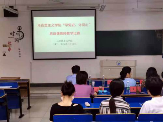 5月28日下午,马克思主义学院党史学习教育系列活动之“学党史、守初心”思政课青年教师教学比赛在香远楼201举行。