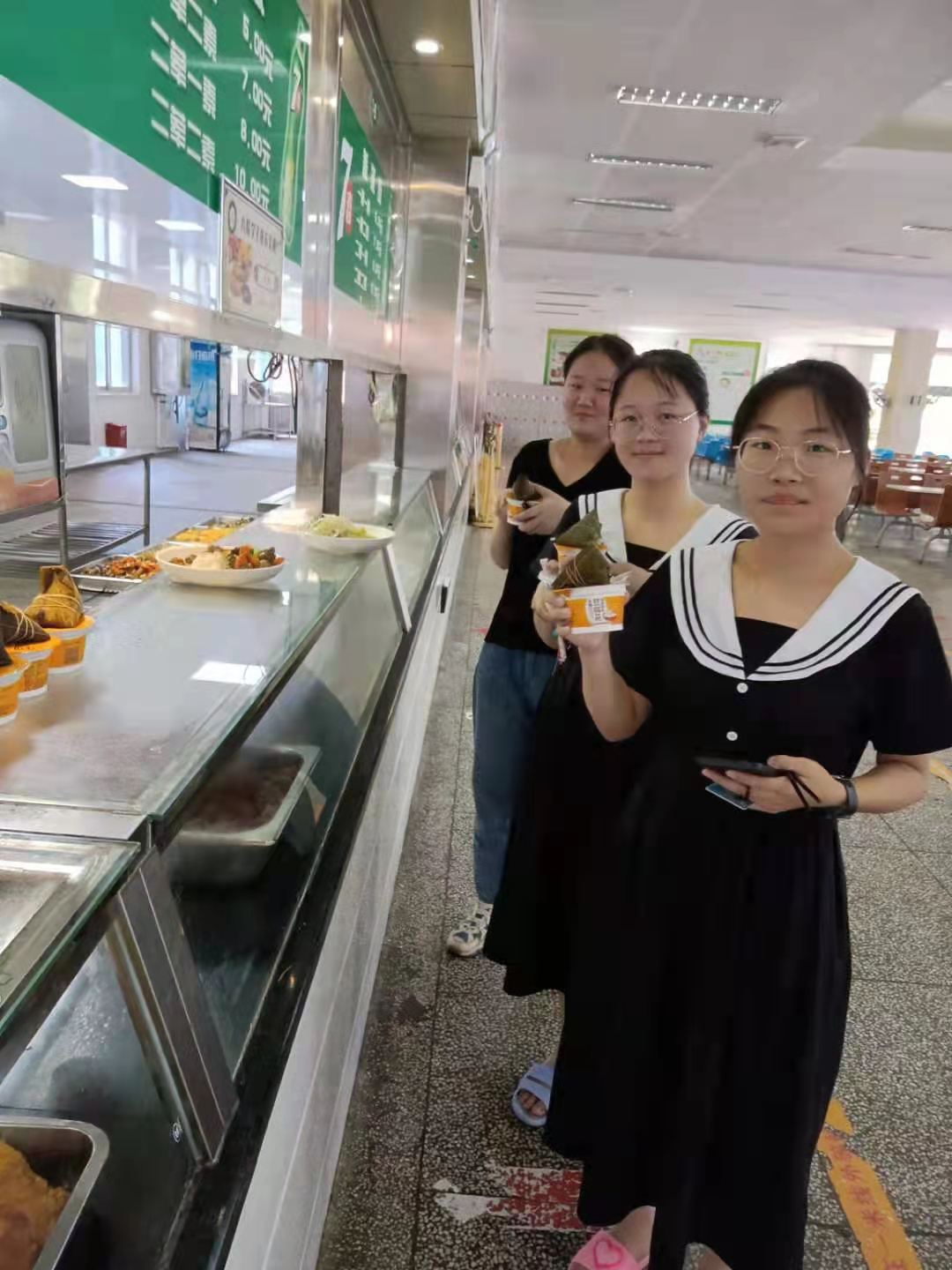 端午节活动正是后勤管理处按照“学党史、悟思想、办实事、开新局”的工作要求,积极为师生办实事的系列活动。更是后勤处饮食服务中心长期以来坚持“三服务三育人”理念,不定期开展各类活动,从服务理念、服务意识上不断追求,不断提高的的具体举措。