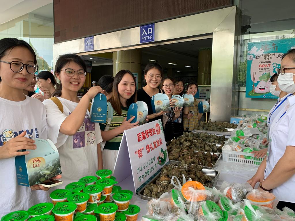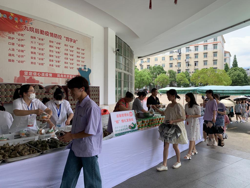 6月14日端午节当天中午,为确保无法与家人团圆的各族师生感受到浓浓的节日氛围,并回馈广大师生对后勤处饮食服务工作的关心和支持,后勤管理处组织各食堂开展了端午节关心关爱活动,为学生精心准备了节日惊喜。早在10天前,饮服中心就集思广益,精心谋划,认真准备,收购了大量的粽叶和原材料,通过近三天的加班,各食堂准备了近15000枚粽子,节日当天免费发放给学生而且不限量,同时,还给师生们准备了咸蛋、豆花、绿豆汤等食品,用硬核又暖心的方式,让学生们感受到了浓浓的关爱和节日气氛。付出爱,收获情。领到粽子的学生们纷纷为后勤的服务点赞,公众号的留言发自肺腑又深切感人。