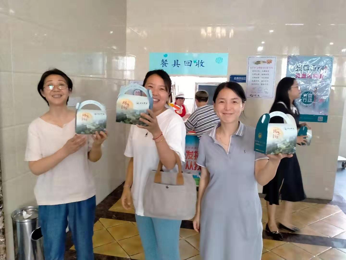 6月11日中午,前来主校区教工食堂和浔东校区教职工小餐厅吃饭的教职员工收获了意外的惊喜,每个就餐的教职工均收到了饮食服务中心精心设计的伴手礼盒。礼盒中有后勤员工加班包出来的各色馅料的粽子,有员工们自己腌制的咸鸭蛋,还有一杯清凉可口的豆花。亲情满满,关怀备至。一粒粽,表祝福;一枚蛋,达心意;一杯羹,爱满怀。教职员工们吃着软糯香甜的粽子,脸上洋溢着幸福的笑容。