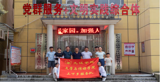 从今年6月下旬起,文传学院组建了2021“我为群众办实事”三下乡服务队,围绕防灾减灾、预防溺水、志愿服务、社会调查四大主题,分为两个阶段,在九江市濂溪区各乡镇和庐山市海会镇全面开展了大学生暑期三下乡社会实践服务工作。