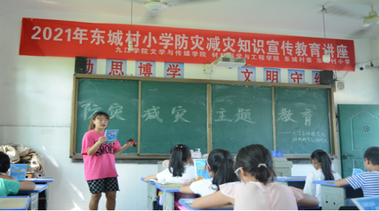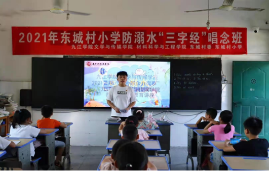 6月23日下午,文传学院三下乡服务队与材料学院暑期三下乡社会实践服务队赴九江市濂溪区莲花镇东城小学,开展了以防灾减灾防溺水为主题的知识宣讲教育讲座。服务队队员们宣讲了有关防灾减灾防溺水的基础知识,组织防溺水“三字经”唱念班,让东城小学的孩子们了解了火灾、溺水等常见危险发生时的应对方法。